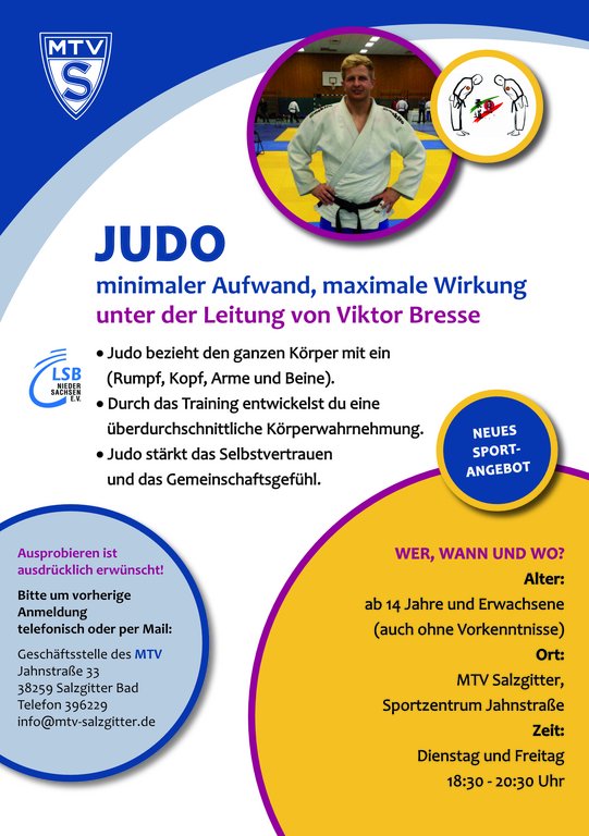 Weitere Informationen direkt unter der Emailadresse: judo(at)mtv-salzgitter.de